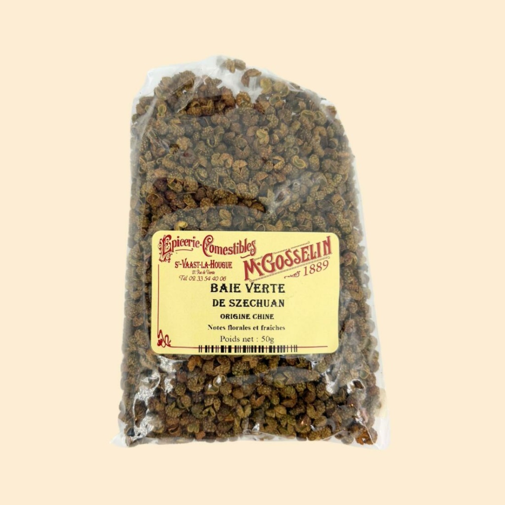 La baie de Szechaun verte possède une grande fraîcheur et des arômes floraux proches du jasmin.