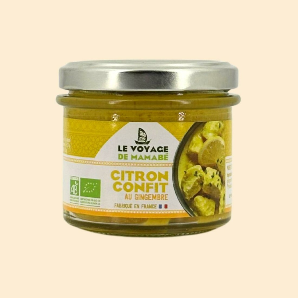 Ingrédients : Citron* confit au sel (44%), huile de tournesol vierge*, gingembre*(21%), vinaigre d’alcool*, épices*.