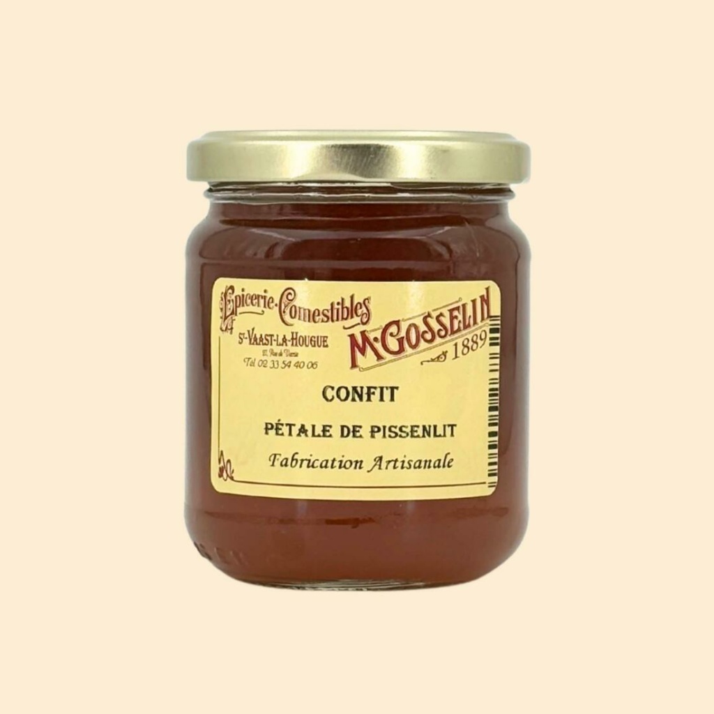 Ingrédients : macération de fleurs de pissenlit, sucre de canne, sirop de glucose-fructose, gélifiant : pectine de fruits, jus de citron