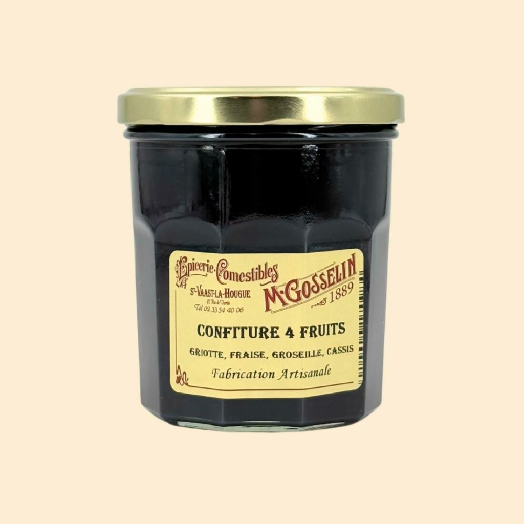 Confiture 4 fruits rouges (griotte, fraise, groseille, cassis)
