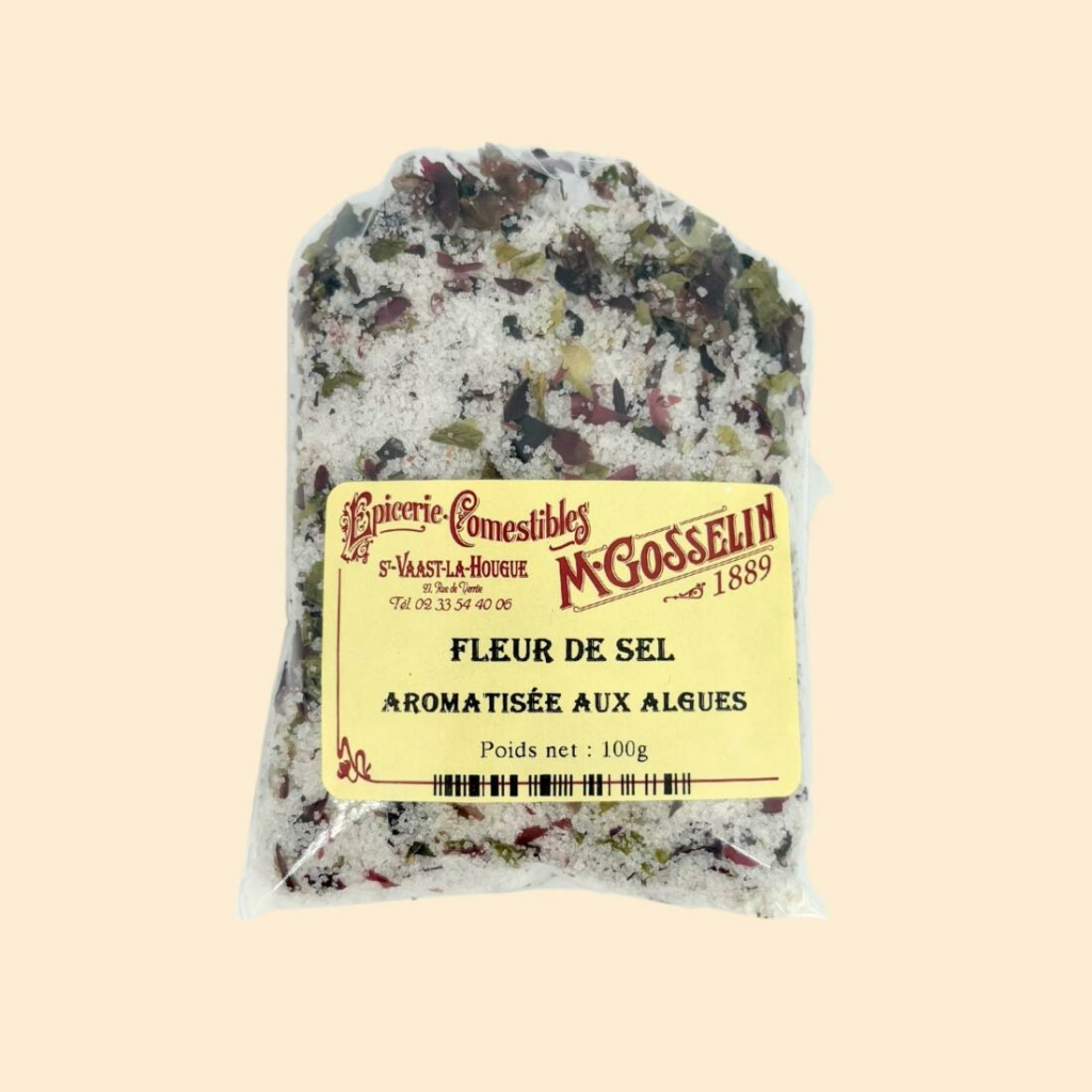 Ingrédients : fleur de sel, mélange d’algues 5.7% (dulse, wakamé, laitue de mer, nori).