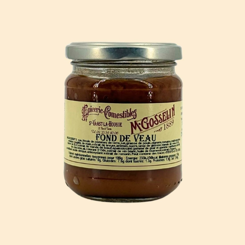 Ingrédients : eau, fécule de pommes de terre, sel, graisse de poule, oignons, tomates, maltodextrine, amidon modifié de maïs, extrait de levure, arômes, sucre, sirop de glucose, viande de veau 0,4%, farine de blé, extrait de viande de bœuf, épaississant : gomme de guar et gomme xanthane, extrait de chicorée, ail, colorant E105c, extrait de vin blanc, huile de tournesol, extrait d’épices, acidifiant : acide citrique, antioxydant : extrait de romarin.