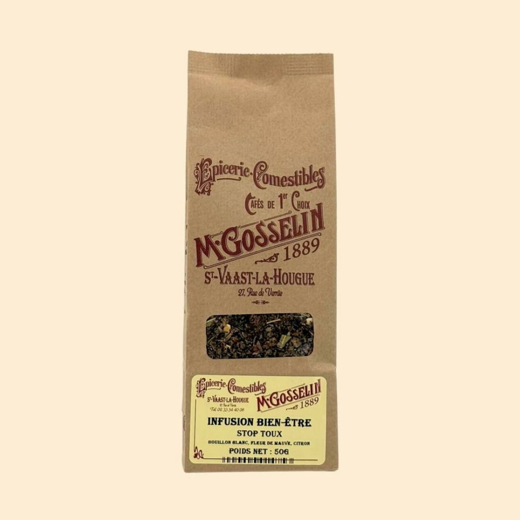 Ingrédients : Bouillon blanc, eucalyptus, écorces d’orange, fleurs de mauve, arômes naturels de citron et de miel.