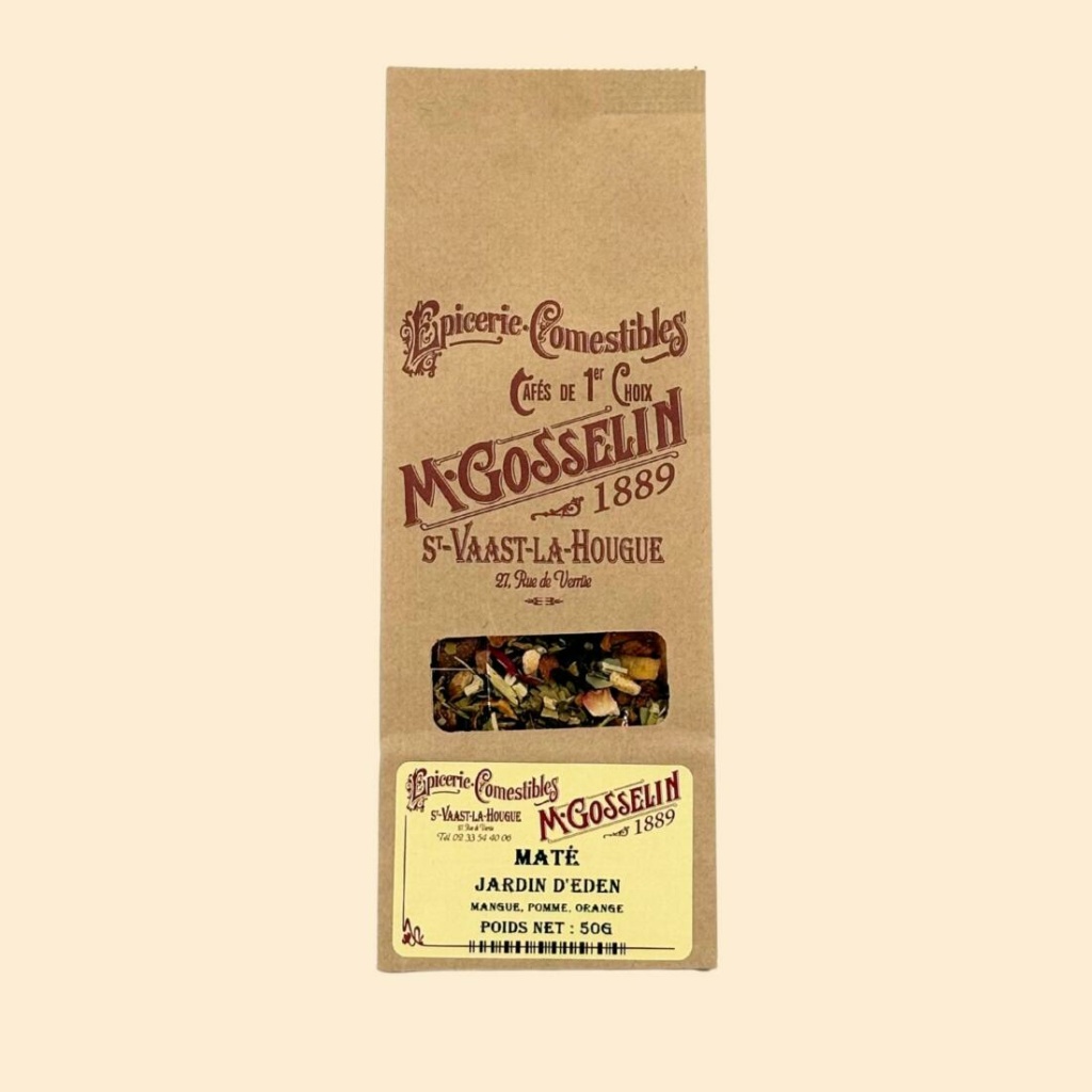Ingrédients : maté vert 44%, mangue 20%, pomme 20%, écorce d’orange douce 4%, hibiscus, cynorrhodon, passiflore, arôme naturel de mangue 3%.