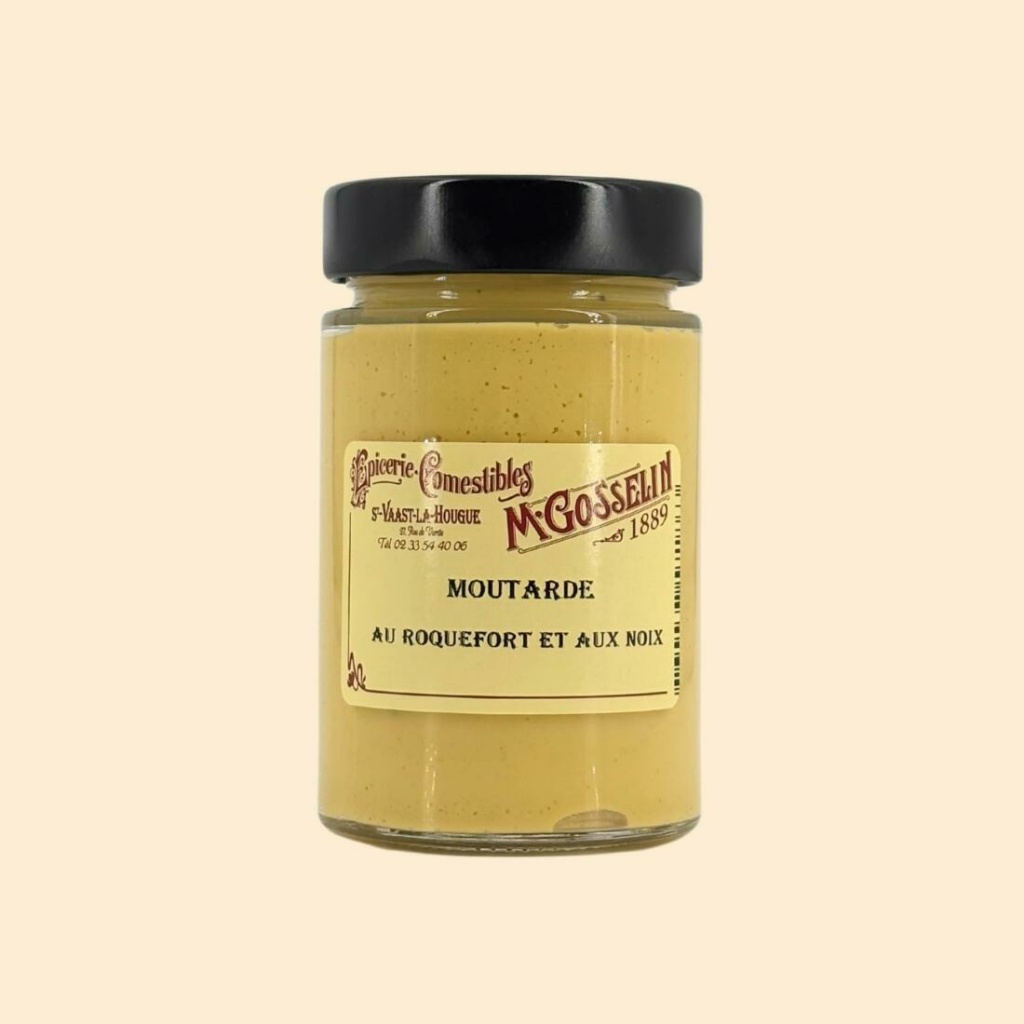 Préparation culinaire à base de moutarde au Roquefort et aux noix :
