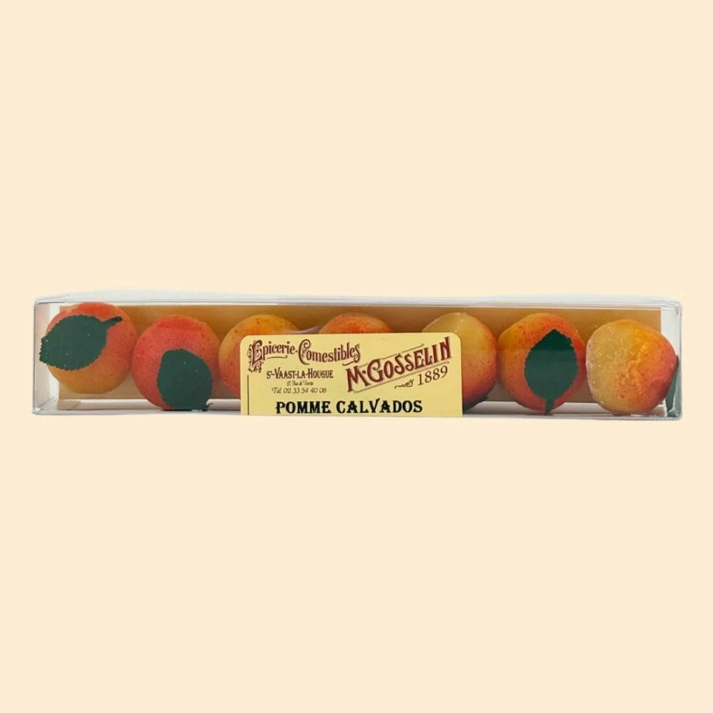 Pâte d’amande fourrée d’un cœur liquide calvados