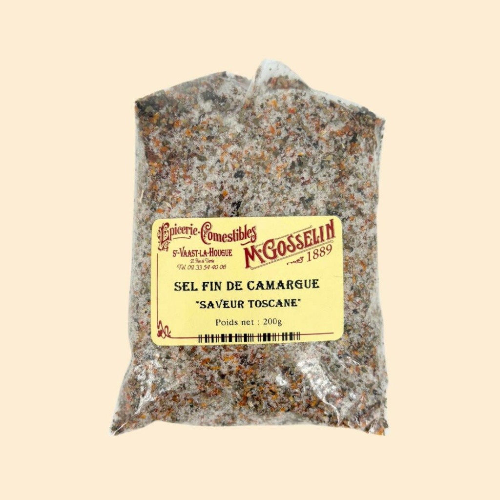 Ingrédients : sel fin de Camargue, olives noires (olive noire, huile d’olive, sel, antioxydant : extrait de romarin, conservateur : gluconate de fer), tomates séchées, basilic.