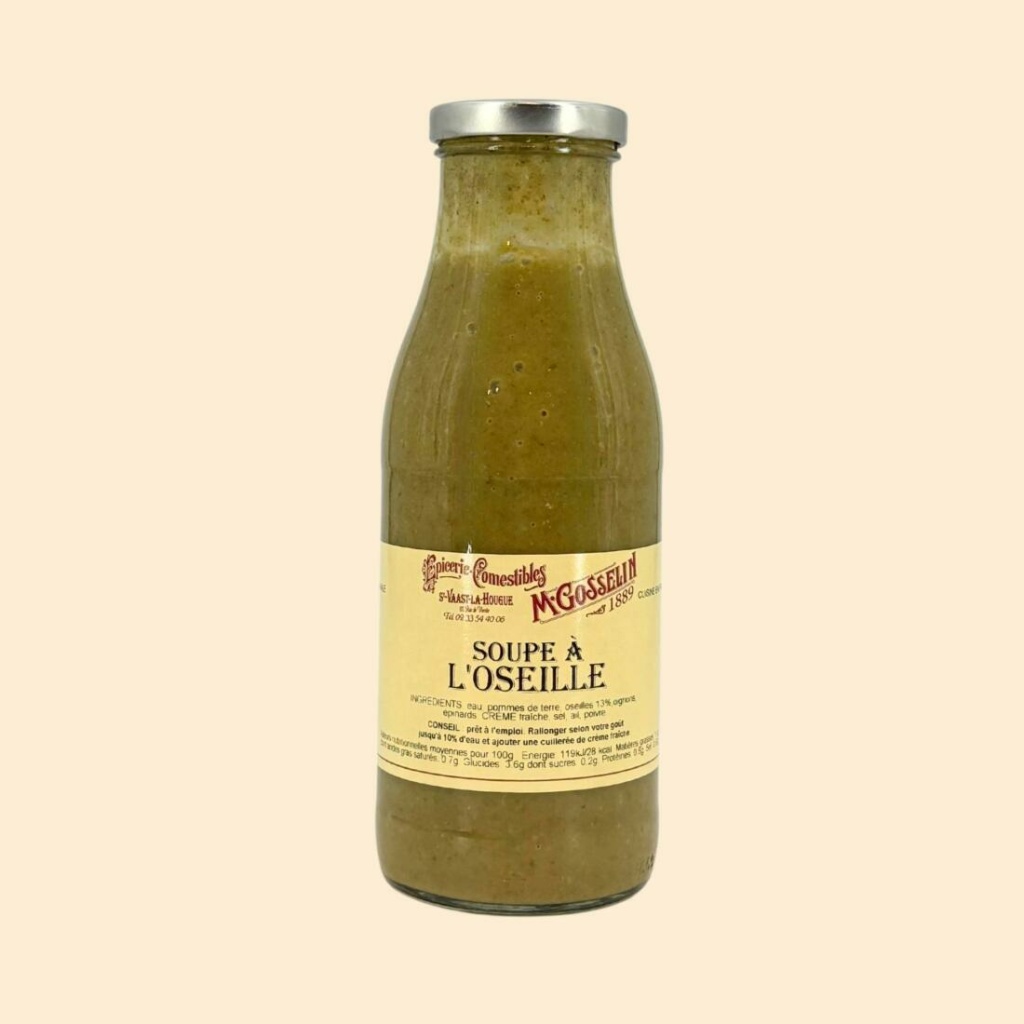 Ingrédients : eau, oseilles 14%,pommes de terre, oignons, épinards, crème fraîche, fécule de manioc, sel, épices et aromates.