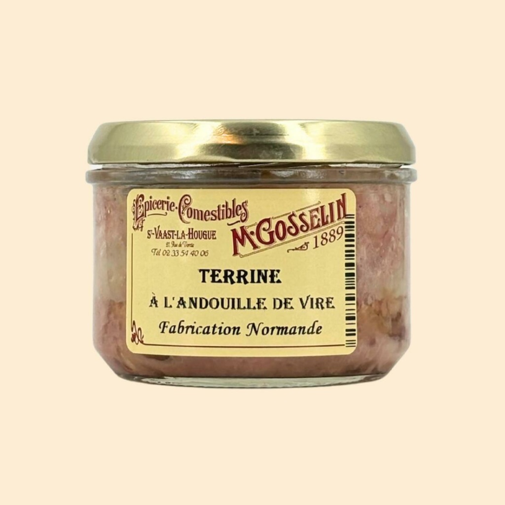 Ingrédients : viande de porc* 68,5%, andouille de Vire (chaudin, menu, estomac de porc, sel, épices, plantes aromatiques, conservateur : E250, enveloppe boyau naturel) 20%, blanc d’oeufs, amidon modifié, sel, poivre.