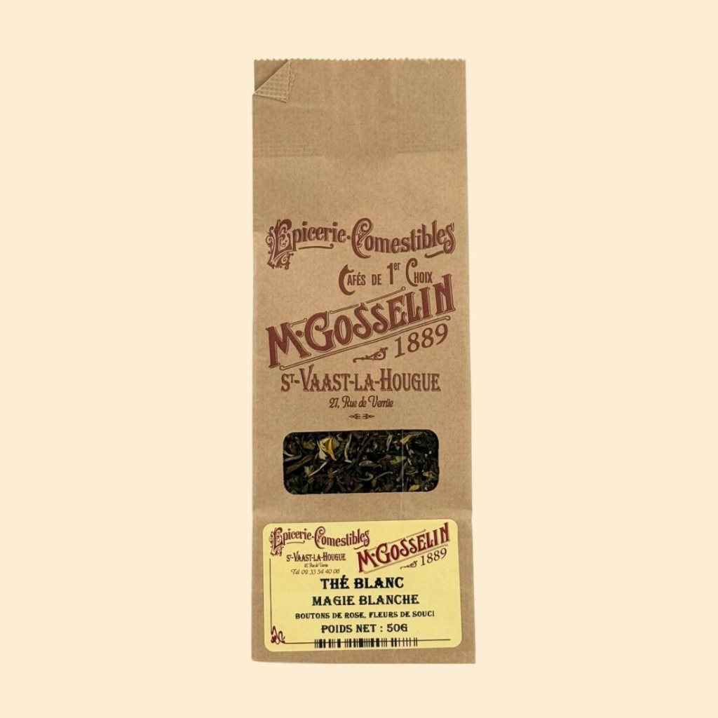 Ingrédients : Thé blanc, boutons de rose, arômes (abricot, pêche), fleurs de soucis.