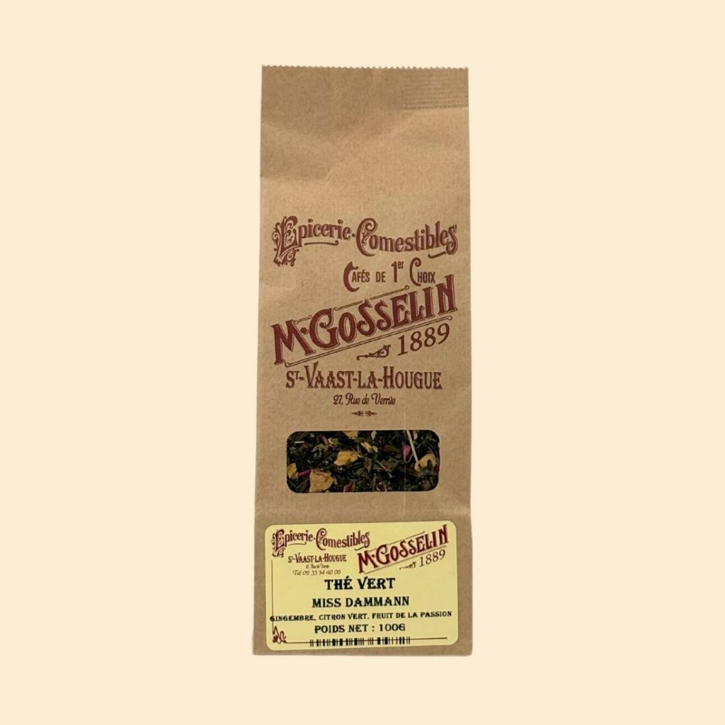 Ingrédients : thé vert, morceaux de gingembre, huile essentielle de citron vert, arôme fruit de la passion, pétales de fleurs.