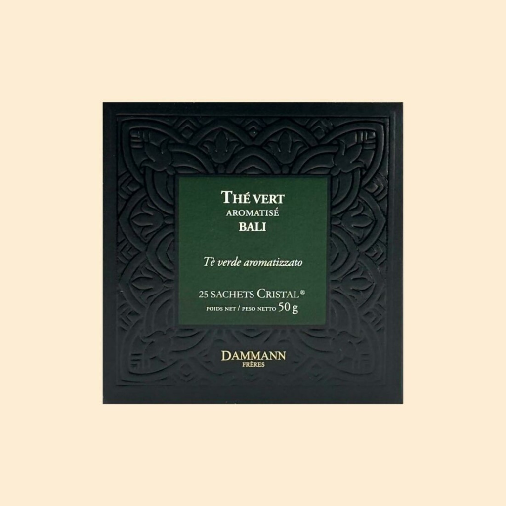 Ingrédients : thé vert, thé vert au jasmin, pétales de fleurs, arômes (litchi, pamplemousse, pêche de vigne) et huile essentielle de rose.