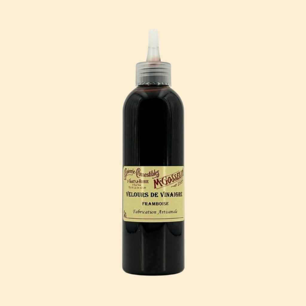 Ingrédients : jus de raisin concentré, sirop de sucre de canne, vinaigre de vin à l’arôme naturel de framboise, amidon modifié. Contient des sulfites.