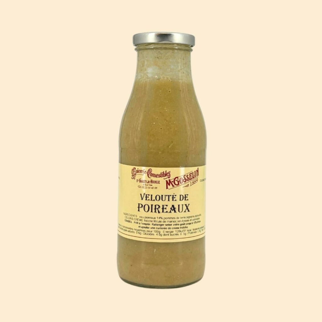 Ingrédients : eau, poireaux 14%, pomme de terre, oignons, épinards, céleris, crème fraîche, fécules de manioc, sel, épices et aromates.